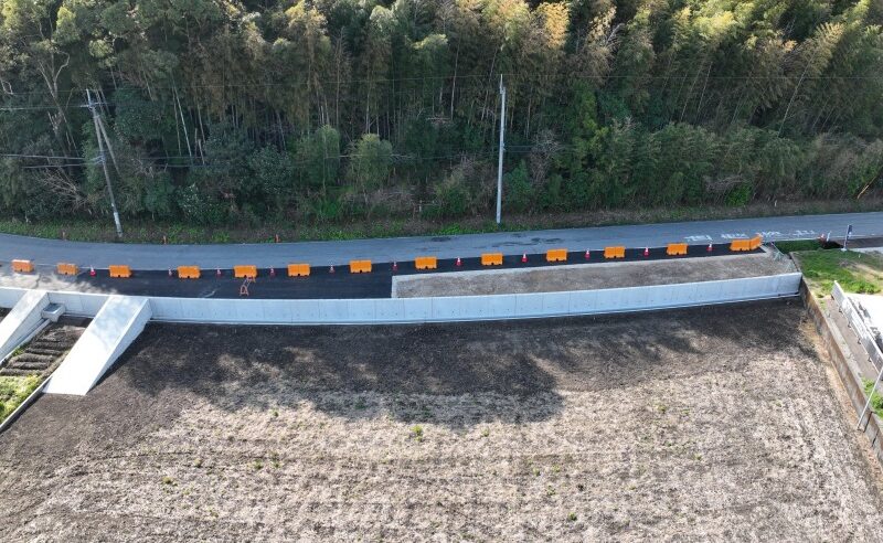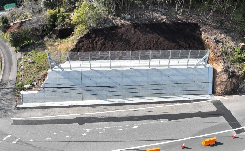 2024年 県道高知春野線防災・安全交付金工事 発注者 高知県高知土木事務所 工事場所 高知市神田 工事概要 施工延長L=51.2m擁壁工(補強土壁工)A=160m2擁壁工(重力式擁壁工)L=3.8m、V=14m3 表彰実績 令和7年度高知県優良建設工事施工者表彰「優良賞」